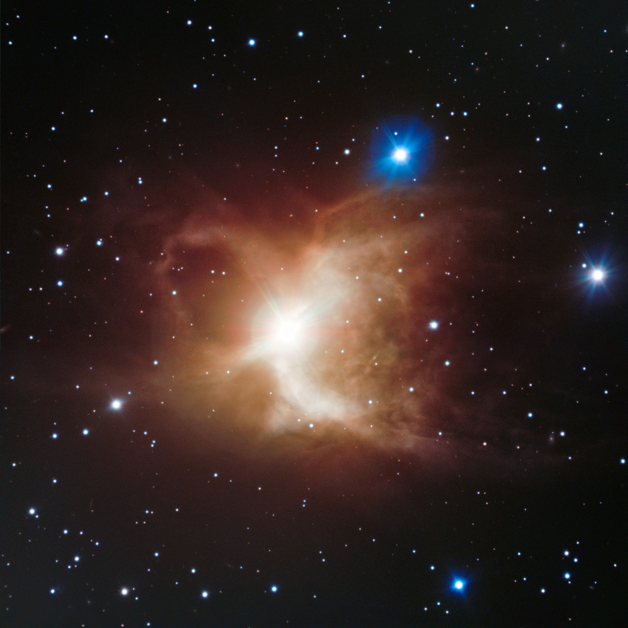 Á næturhimninum á suðurhveli, í órafjarlægð frá Jörðinni, er Toby Jug þokan, sem sést í ótrúlegum smáatriðum á þessari nýju ljósmynd. Föla gasskýið umlykur rauða risastjörnu sem er fimm sinnum efnismeiri en sólin okkar! Ljósið frá stjörnunni í miðjunni er mjög skært og endurkastast af gasinu, svo skýið virðist glóa. Tveir breskir stjörnufræðingar gáfu þokunni nafnið því þeim þóttu fölu gasslæðurnar líkjast sérstakri enskri könnu með handfangi sem kallast Toby Jug.