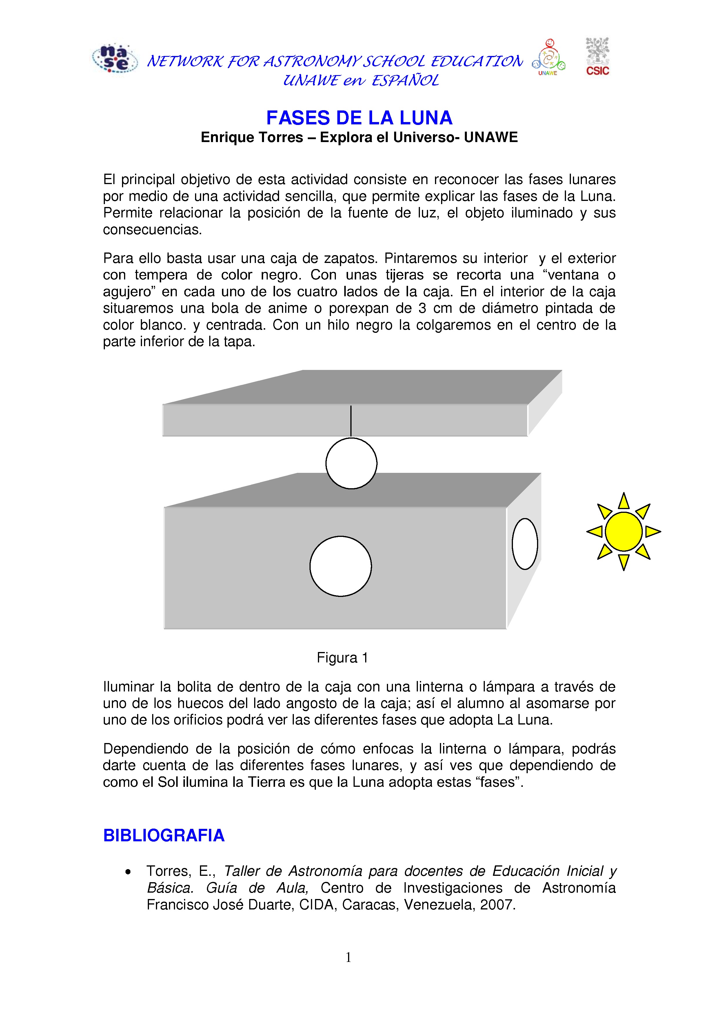 El principal objetivo de esta actividad consiste en reconocer las fases lunares por medio de una actividad sencilla, que permite explicarlas. Permite relacionar la posición de la fuente de luz, el objeto iluminado y sus consecuencias.