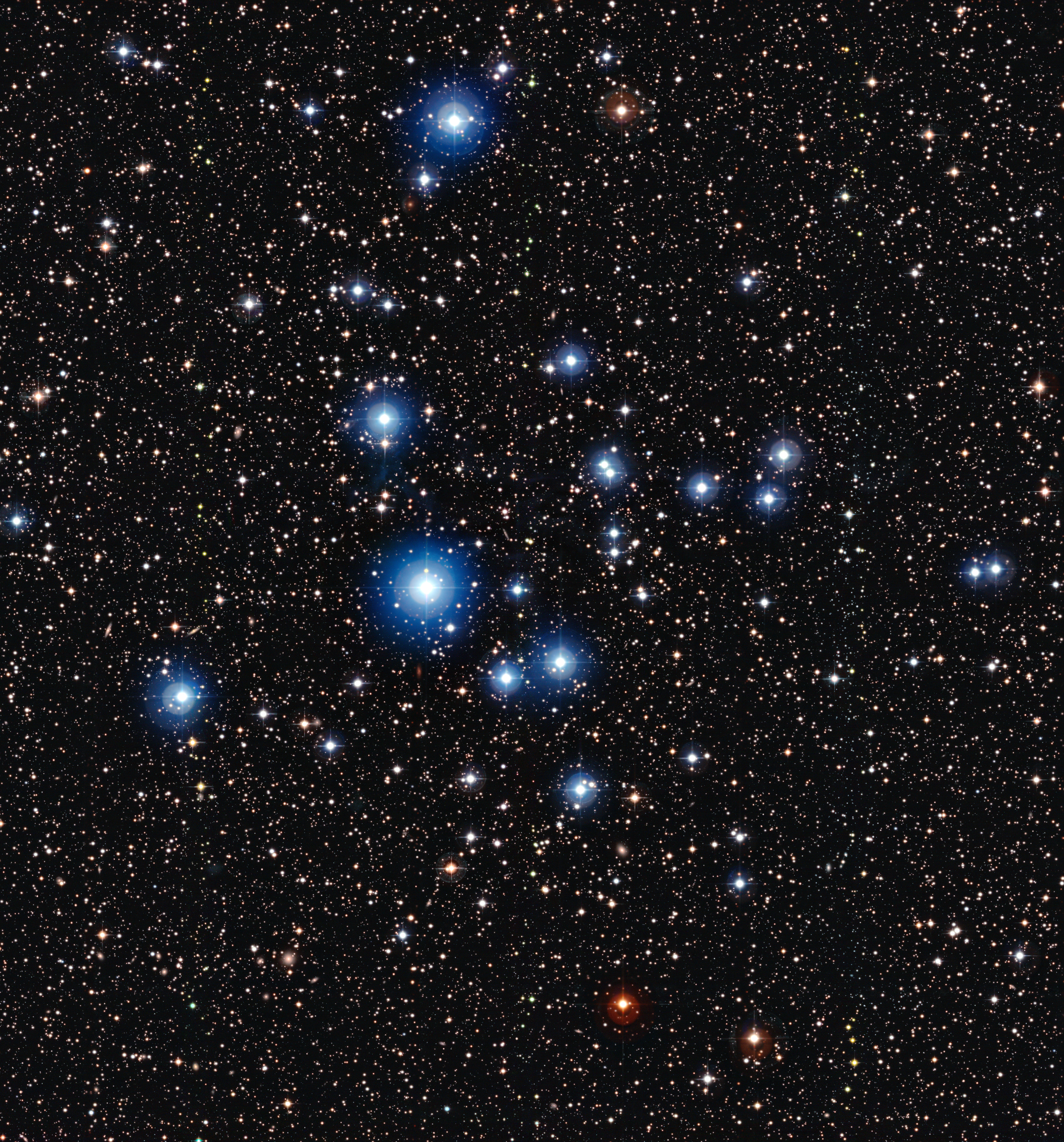 El Universo es un barrio viejo: tiene unos 13800 millones de años de edad. Nuestra galaxia, la Vía Láctea, es también antigua: algunas de sus estrellas tienen más de 13 mil millones de años de edad. Pero se trata todavía de un lugar animado, con objetos nuevos formándose y otros que están siendo destruidos. En esta imagen, puedes ver un grupo de jóvenes recién llegadas a nuestro vecindario solar.