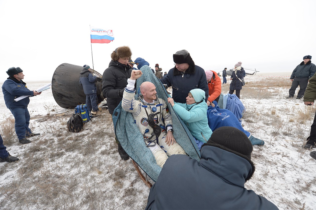 Esta mañana temprano tres astronautas dentro de la nave espacial Soyuz se desacoplaron de la Estación Espacial Internacional y se zambulleron de vuelta a la Tierra. Su violento descenso duró 3 horas antes de que aterrizaran a salvo sobre las llanuras cubiertas de hierba de Asia central, finalizando su misión de 6 meses en el espacio.