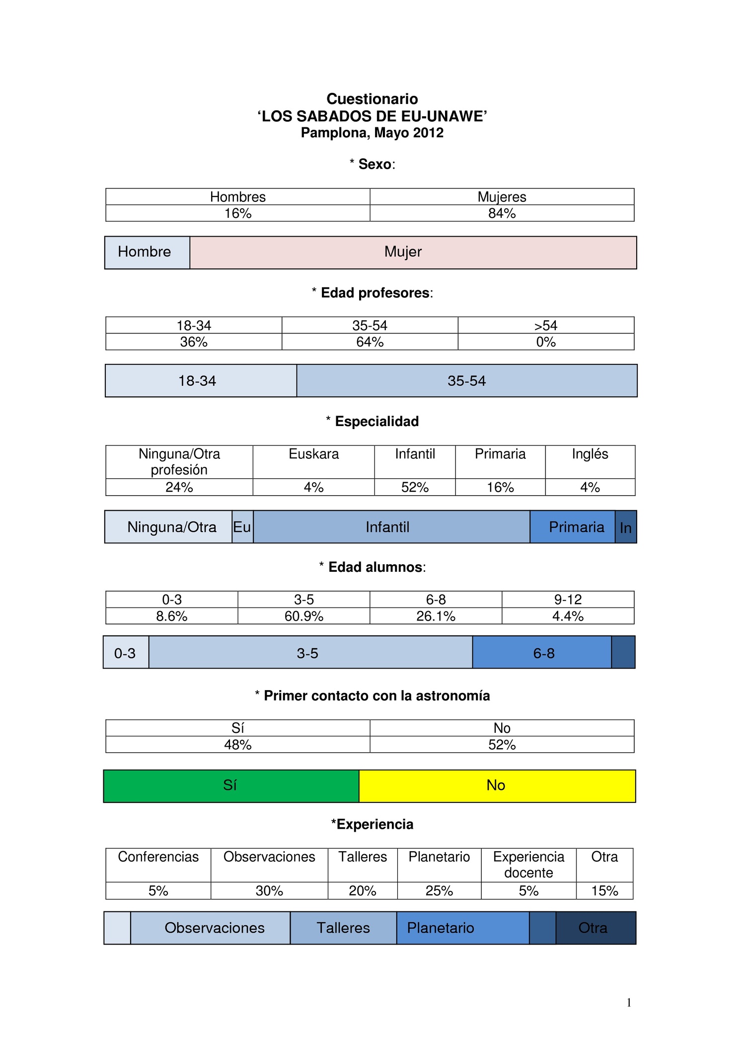 Cuestionario evaluación Sábados EU-UNAWE, Pamplona 4-5 Mayo 2012